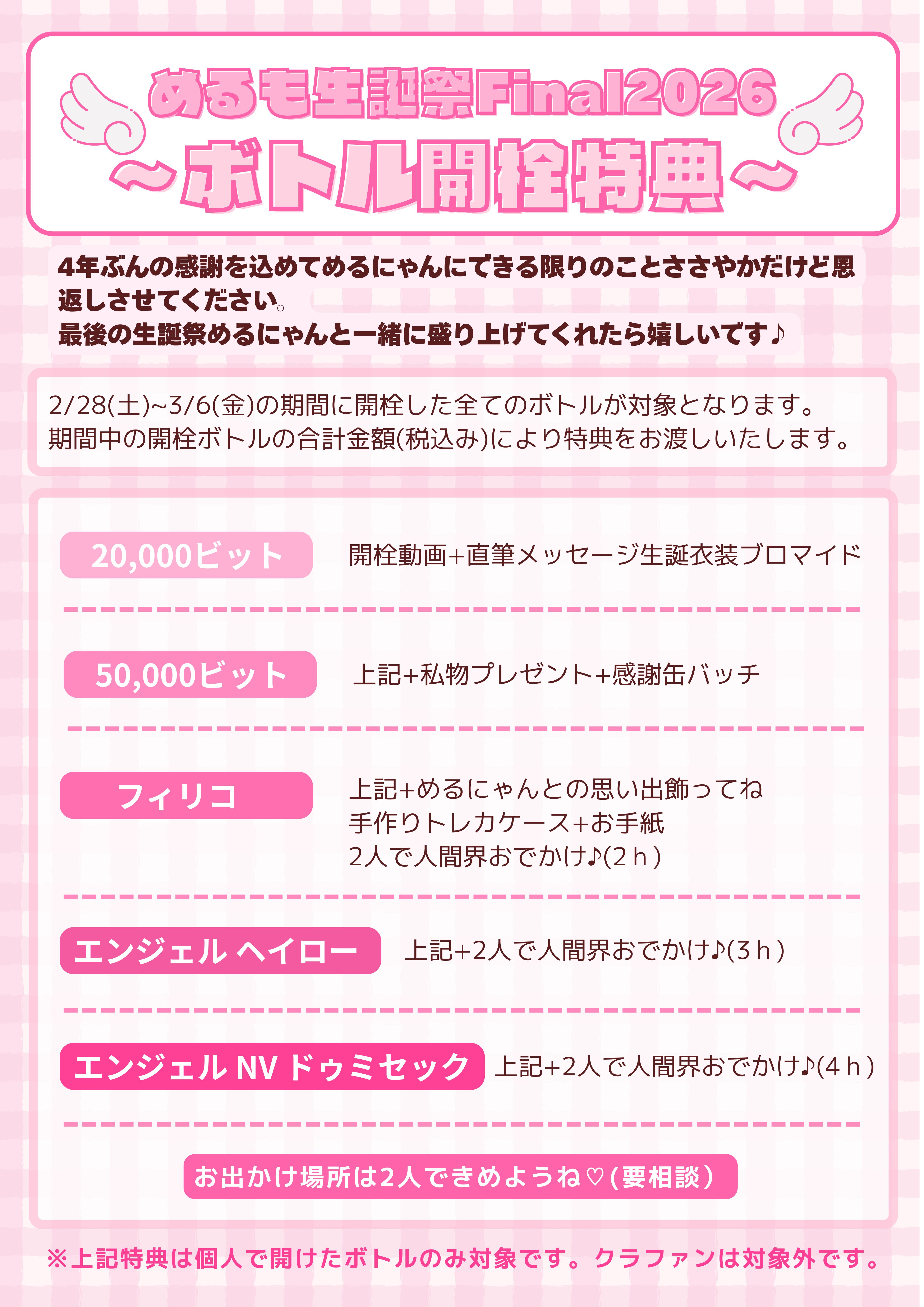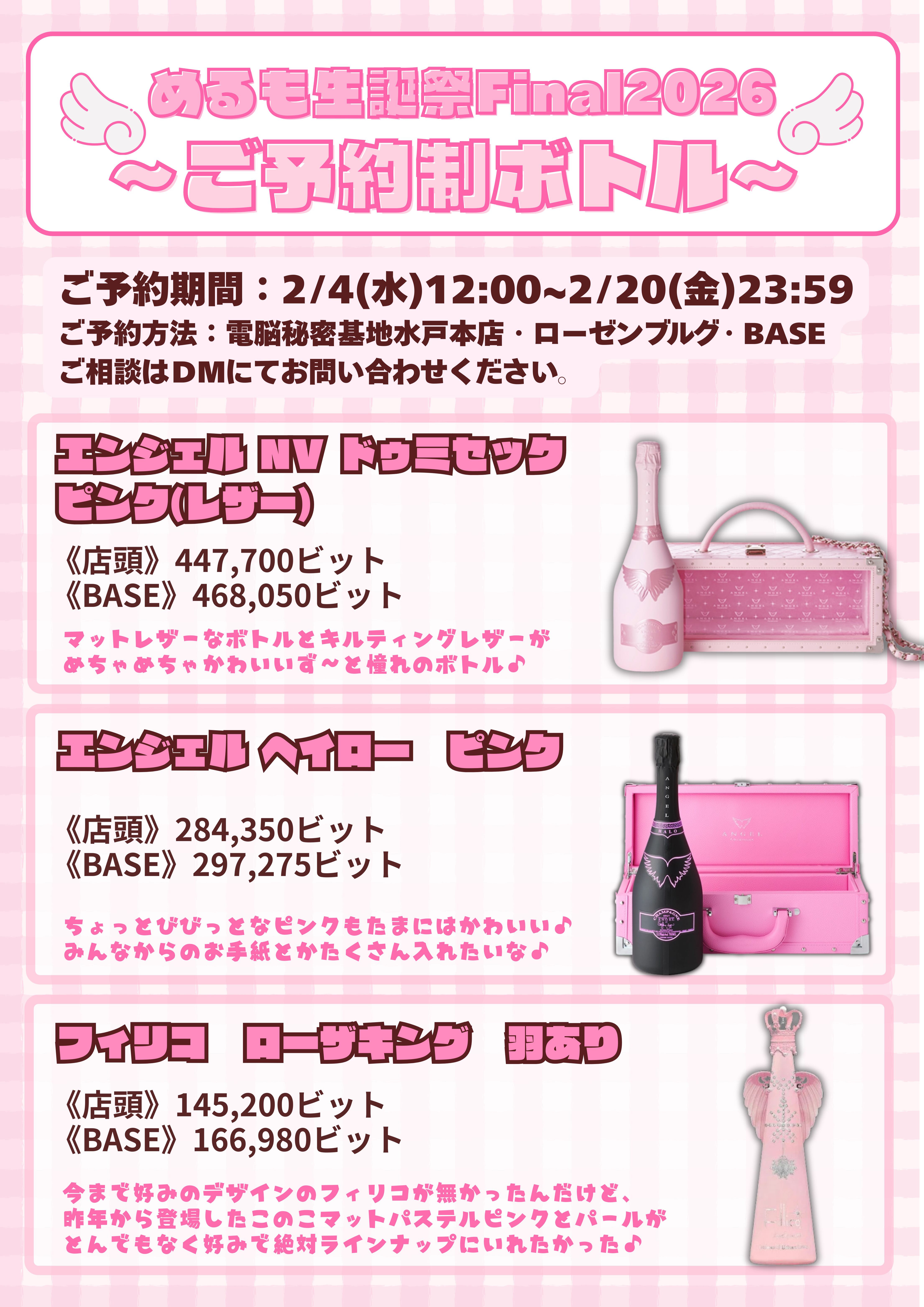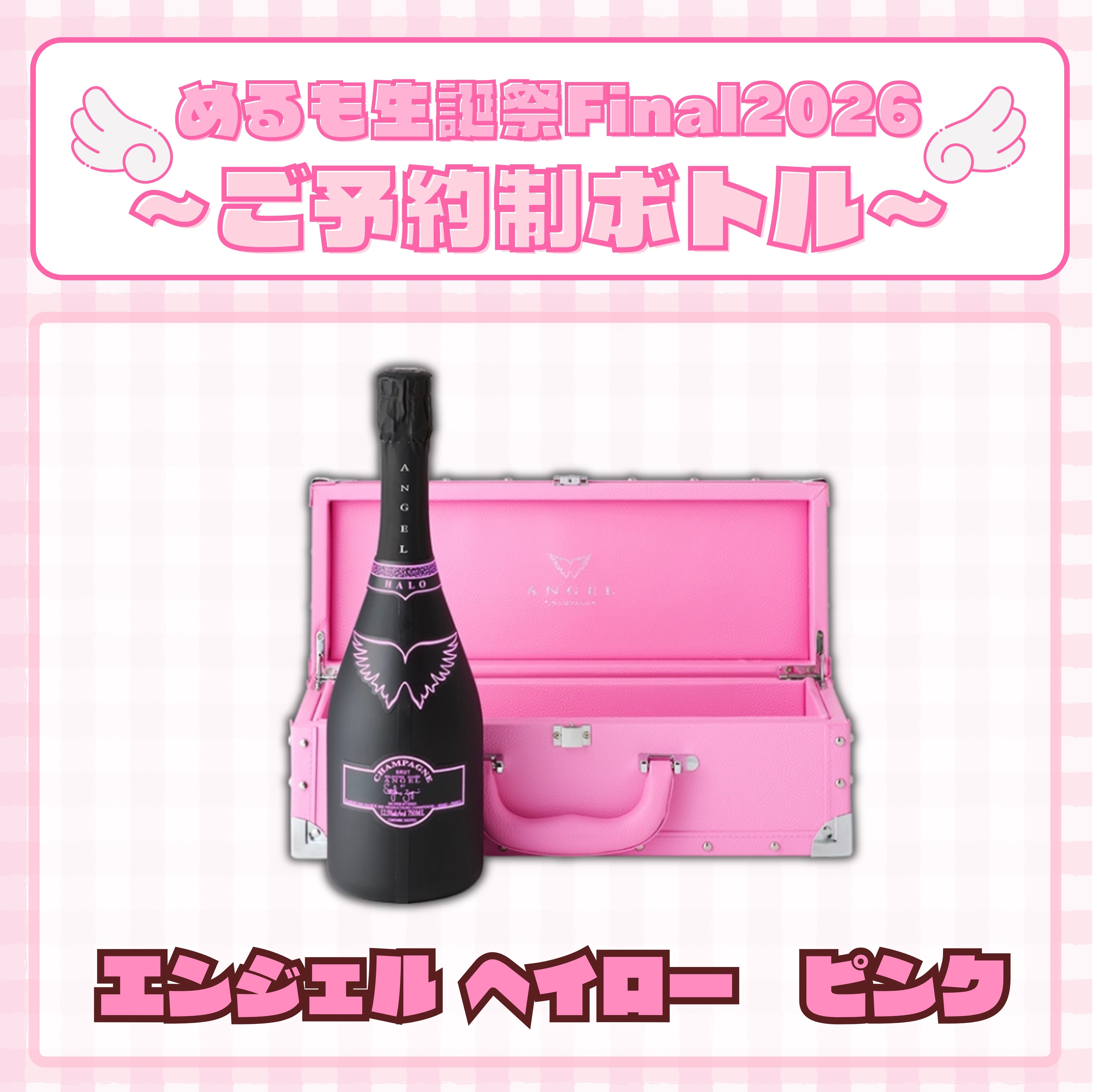 ご予約制ボトル【めるも生誕祭2026Final【ANGEL CHAMPAGNE NV Brut HALO Pink】】のご予約ページとなります。