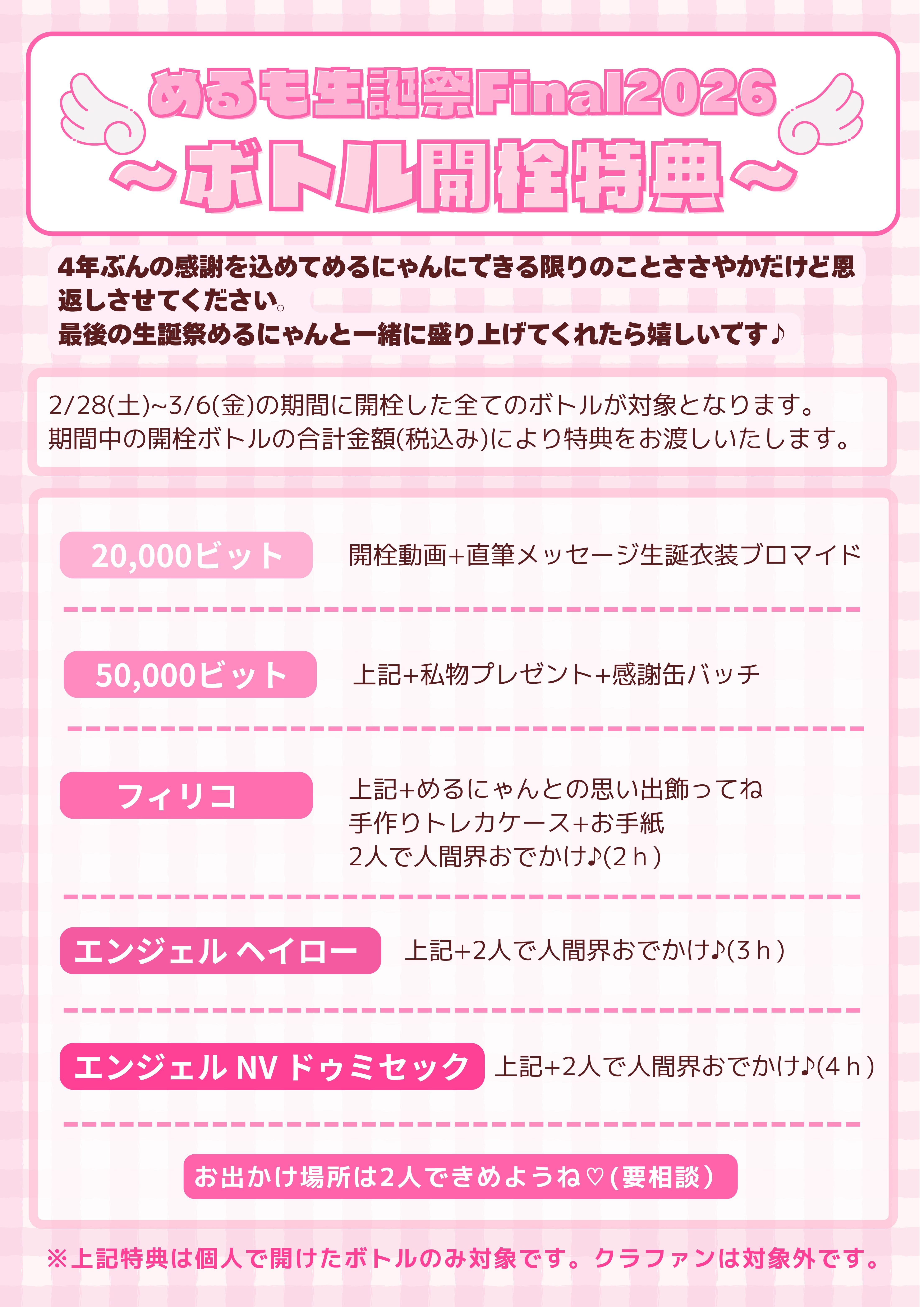 ご予約制ボトル【めるも生誕祭2026Final【ANGEL CHAMPAGNE NV Demi Sec Rose】】のご予約ページとなります。