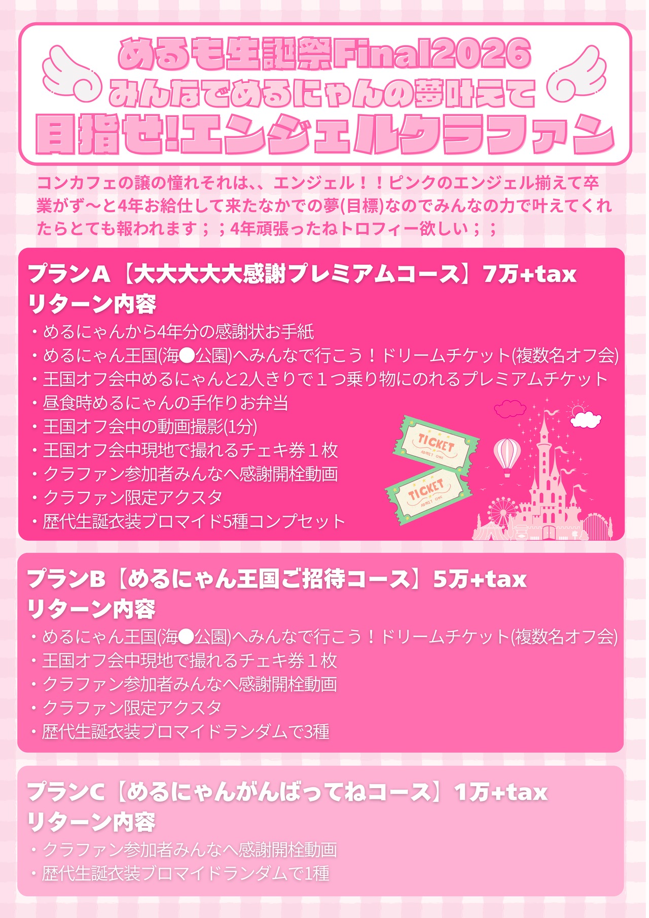 目指せ!エンジェルクラファン【プランC】支援ページになります。